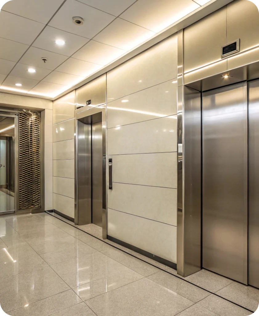 • Revestimento ou escovamento em aço, de portas e chapas da Cabina; Troca do Piso (Granito, Paviflex, Capacho, etc) com ou sem tabeira;